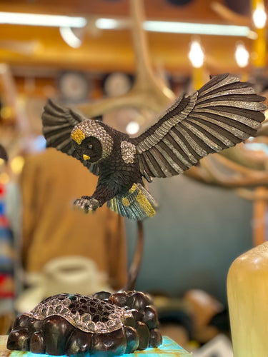 In flight Owl Teak Carving