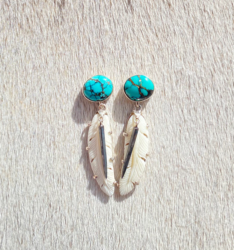 Turquoise Antler Feather earring